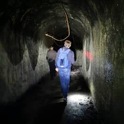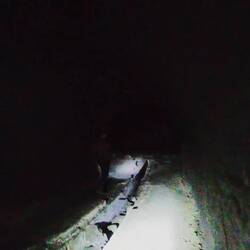 In die Anlage selbst muss man sich trauen, denn schon nach wenigen Metern ist es stockfinster, da es keine einzige Lichtquelle in den vielen Tunneln gibt. Dazu kommt der herumliegende Schutt, Löcher und Stahlteile, die aus den Wänden und von der Decke hängen.