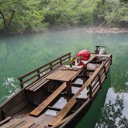 Noch etwas weiter aufwärts fanden wir eine mystisch anmutende Stelle, wo der Dunst wie Wolken über dem Fluss lag. Ein wahrlich romantischer Ort, der scheinbar dafür bekannt ist 🛶👩‍❤️‍💋‍👨