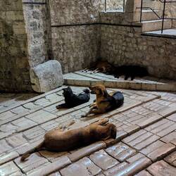 Auf den Straßen begegnen uns viele streunende Hunde. Sie sind ganz lieb und begleiten uns immer wieder, so als würden sie uns den Weg zeigen wollen.
