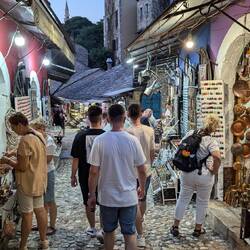 Nach der Fahrt durch Bosnien, vorbei an vielen verwarlosten Kleinstädten, wirkt Mostar wie eine Perle. Die Altstadt ist sehr schön, mit vielen unterschiedlichen kleinen Geschäften. Zum ersten Mal haben wir das Gefühl, "woanders" zu sein und wirklich neue Dinge zu sehen.