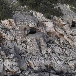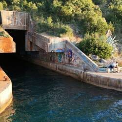 Unser finales Ziel war der U-Boot-Bunker „Rose“. Dies ist der letzte von insgesamt drei U-Boot-Tunneln, die von der jugoslawischen Marine während des Kalten Krieges errichtet wurden. Sie dienten als versteckte Basen und Schutz für U-Boote vor möglichen Angriffen der NATO. Diese Anlagen sind so in den Felsen eingebaut, dass sie von der Luft aus kaum zu erkennen sind. Die Eingänge wurden mit täuschend echten Steinattrappen bedeckt, von denen man heute noch die Überreste sehen kann.