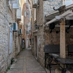Unser kurzer Stopp in Budva hat uns einen richtig schönen Eindruck von dieser Küstenstadt gegeben, die als einer der beliebtesten Urlaubsorte Montenegros gilt. Die Altstadt – „Stari Grad“ – ist klein, aber charmant, mit ihren verwinkelten Gassen und alten Steinhäusern. Gerade jetzt, außerhalb der Saison, war die Atmosphäre ruhig und entspannt, die Straßen fast leer – perfekt, um das mediterrane Flair auf sich wirken zu lassen.