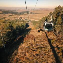 Heute sind wir mit der Gold Gondel in Zlatibor gefahren, die mit ihren 9 Kilometern die längste Panoramaseilbahn der Welt ist! Von Zlatibor auf rund 1.000 Metern Höhe fährt man entspannt hinauf zum Tornik-Berg auf etwa 1.500 Meter. Die Fahrt dauert ca. 25 Minuten und bietet unterwegs einen tollen Blick auf die umliegenden Hügel und Wälder.