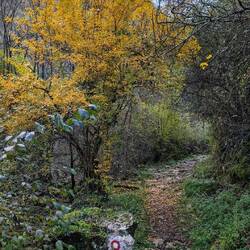 Der Wanderweg startet in dem kleinen Dorf Rijeka Crnojevića, das außerhalb der Saison etwas ausgestorben wirkt und als Geheimtipp für Bootstouren gilt (was wir vorher nicht wussten). Von hier verläuft der Weg entlang des Flusses, mal über Stock, mal über Stein. Man kommt vorbei an verschiedenen Ruinen, die früher mal Mühlen gewesen sein sollen - außer den Mühlsteinen erkennt man davon nicht viel, aber es gibt einige Info-Tafeln zu der früheren Geschichte.
