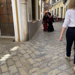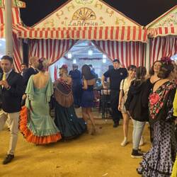 We visited the Feria de Abril in the Triana neighborhood of Seville this evening. Here where you will find Sevillian women dressed in colorful flamenco dresses as well as over 1000 parties happeningLeia mais