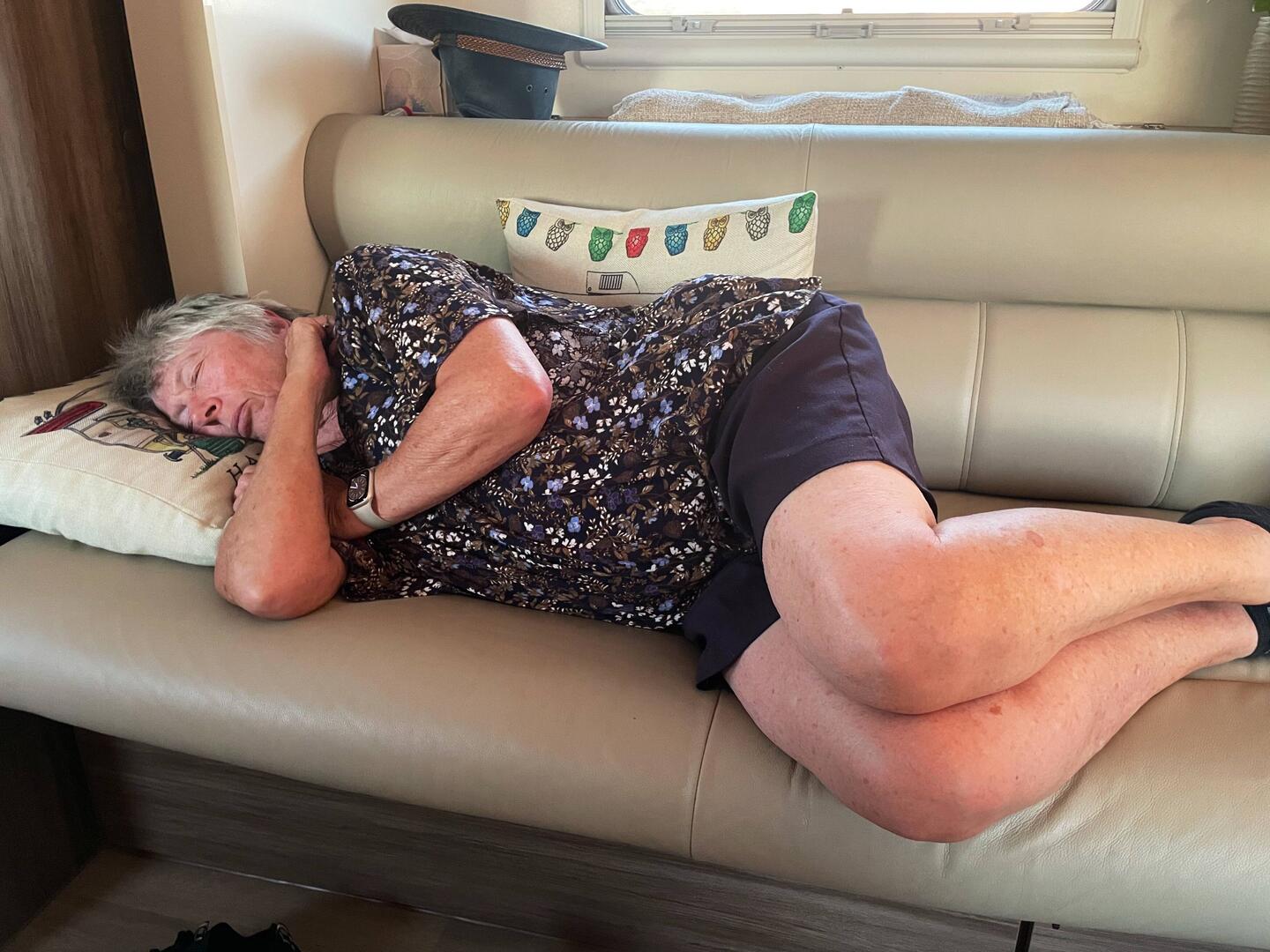 It’s been a great trip and winding down must be tiring. Sue decides it’s time for a pre-dinner nanna nap on the lounge.