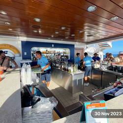 This is gotta be the best bar on the ship. It’s the noisiest, the busiest, the sunniest, and what a great bunch of boys behind the bar.