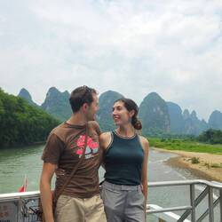 Levés tôt le matin pour embarquer sur l'un des (très) nombreux ferries qui se laissent porter le long du courant de la rivière Li. Les 4 heures de traversée sont passées à toute allure alors que la progression était très lente...sans doute à cause de la rêverie qui s'installe presque sans qu'on s'en aperçoive. Les paysages de falaises verticales aux formes improbables, toujours élancées vers le ciel sont ensorcelants. Les petites embarcations en bambou des pêcheurs, les buffles qui paissent, les grottes, les forêts denses...tout se succède comme par enchantement sans qu'on ait besoin de lever le petit doigt.Read more
