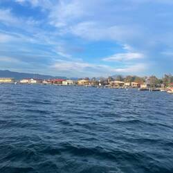 Nach einer ruhigen Nacht gab es früh wieder ein paar Böen, die das kleine Motorboot des Nachbars auf uns getrieben haben. Die Scheuerleiste wieder angeklopft und mal geschaut: kein SchadenBaca lagi