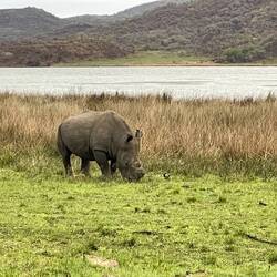 Leider ohne Sigrun sind wir nach dem Kaffee losgefahren. Wieder gab es viel zu sehen. U.a. eine große Elefantenherde mit etwa 13 Tieren. Auch Waterbeasts und Zebras waren unterwegs. Highlight war einLes mer