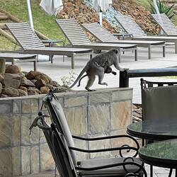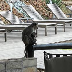 Zum Mittagessen gab es wieder leckere Sachen. Auf der Terasse sind die Affen rumgesprungen und haben allen möglichen Blödsinn angestellt. Nach dem Essen haben wir für Janny eine warme JackeLes mer