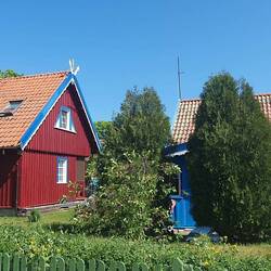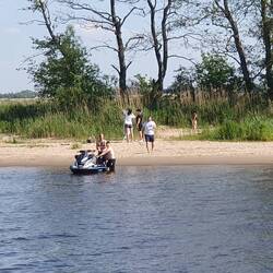 Eigentlich wollten wir in Nida dann noch das Sommerhaus von Thomas Mann anschauen. Aber die Dünentour hat uns gereicht, sodass wir dann nur mehr in einem Kaffeehaus am Hafen bei Saft und ein paar Snacks auf unser Schiff warteten, das um 16.00 Uhr wieder ablegt und uns nach Uostadvaris zurückbrachte. Von dort fuhren wir dann nochmal weiter auf die Landzunge Vente im Memeldelta. Hier in der Nähe wollen wir morgen noch eine Moorwanderung machen.