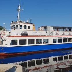 Mit dem Linienschiff namens Forelle-Flicka fährt man 1,5 Stunden nach Nida (Nidden) auf der kurischen Nehrung.