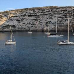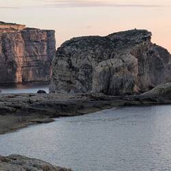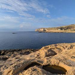 Nach dem Besuch der Zitadelle, setzten wir uns noch auf die Terrasse einer der unzähligen Bars und sahen eine Zeitlang dem Treiben zu, bevor es uns zuviel wurde und wir einen Platz zum Freistehen für die nächsten Tage suchten. Auf dem ersten angesteuert ein Strand Platz herrschte Rambazamba und wir fanden gar keinen Platz. Wir fuhren also weiter nach hieher in die Dwejra-Bay beim Ort San Lawrenz. Hier war am Nachmittag auch viel los und am Abend kamen die Leute wegen des Sonnenuntergangs hierher. Leider hat eine Wolkenbank uns allen einen Strich durch die Rechnung gemacht. Aber schön war es trotzdem.