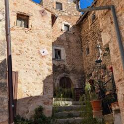 Nach dem Abstieg haben wir im einzigen Lokal von Calascio eine Kleinigkeit gegessen und sind dann weitergefahren zu den "Grotte di stiffe", welche beeindruckende Tropfsteinhöhlen sein sollen. Es war schon schwer einen Parkplatz zu finden, aber dann machten wir uns frohen Mutes zum Eingang der Höhlen, wo uns freundlich mitgeteilt wurde, dass der nächste Einlass erst in einer Stunde, also um 17.00 Uhr, möglich ist. So lange wollten wir dann doch nicht warten und so fuhren wir einfach relativ ziellos weiter Richtung Südwesten, wo wir in dem kleinen Ort Santa Maria del Ponte auf einem schönen Parkplatz mit Wasseranschluss übernachteten. Kochen mussten wir natürlich selbst, weil es im Umkreis von ca. 50 km weder Bar noch Restaurant gab. Also gab es Linsencurry mit Ciabatta.
