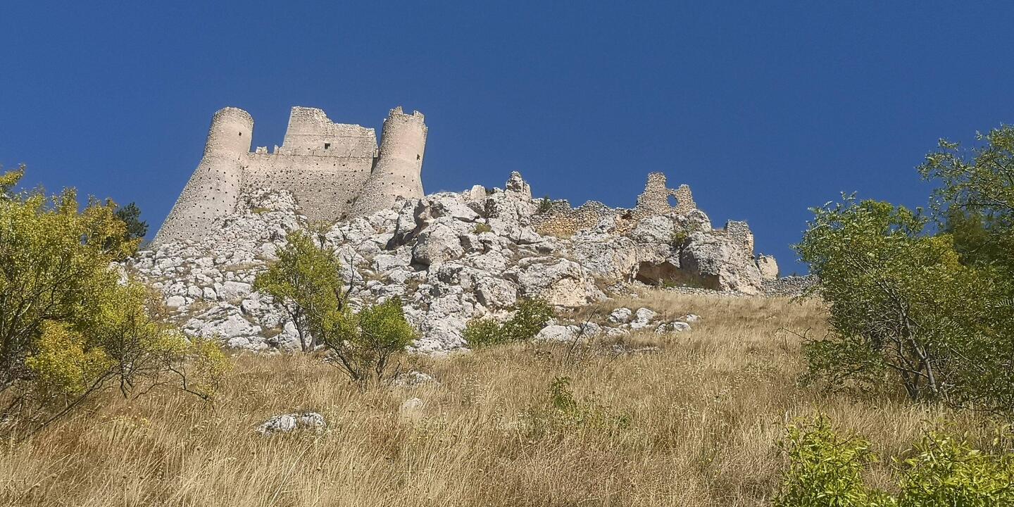 Und noch immer treiben wir uns mitten im Apennin herum, genau dort, wo er am schönsten, aber auch am unwirtlichsten ist. Hier in den Abruzzen, wo die Hauptstadt L'Aquila der einzige wirklich große Ort ist, wird versucht, die Schönheit der Gegend und die Unerreichbarkeit der Dörfer in den Berghängen sinnvoll touristisch zu vermarkten. Eines dieser Dörfer ist Calascio, auch vom Erdbeben 2009 betroffen. Calascio hat mit Rocca Calascio eine wirklich sehenswerte Burgruine, von der aus man das ganze Gran Sasso Massiv und den regionalen Naturpark Silente-Velino überblicken kann. Wir haben unterhalb des Dorfes Calascio geparkt und sind zu Fuß ca. 40 Minuten steil bergauf nach Rocca Calascio gewandert. Für Menschen, die nicht wandern wollen oder können, fährt in regelmäßigen kurzen Abständen ein Shuttlebus bis ganz nahe an die Burg. Ok, heute ist Samstag und Rocca Calascio ist extrem gut besucht. Und die Burg mit dem dazugehörigen Ort ist wirklich einen Besuch wert. Außerdem ist die karge, mystische Landschaft als Filmkulisse sehr beliebt. So wurden einige Szenen des Films "Im Namen der Rose" mit Sean Connery hier gedreht.