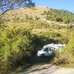 12 km, 400 Höhenmeter von Assergi nach San Pietro di Jenca. Sehr schöne Wanderung, aber ohne spektakuläre Höhepunkte. Danach sind wir noch in der Bar des Restaurants auf einen Drink eingekehrt und schließlich weitergefahren Richtung Campo Imperatore, von wo aus wir morgen eine größere Bergtour unternehmen wollen. Auf dem spektakulären Weg dorthin gibt es viele wunderbare Plätze zum Übernachten, was zwar verboten ist, aber zu dieser Jahreszeit niemanden kümmert. Auf so einem Platz ließen wir den Tag ausklingen.