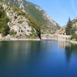 Nun wollten wir ins Gebirge fahren, zwei wunderbare Seen locken uns dort hin: Der Lago di San Domenico und der Lago di Scanno. Erstens war schon die Straße dahin wirklich herausfordernd. Ich glaube, die herausforderndste Straße, seit wir mit dem Balú unterwegs sind - und heute, am Sonntag, von tausenden Motorradfahrern bevölkert. Und die Seen? Keine Chance auf einen Parkplatz und sei er noch so illegal. Am Lago di Scanno haben wir dann aufgegeben und beschlossen, weiterzufahren. Allerdings war die Weiterfahrt nur durch das Dorf Scanno möglich. Und dort war heute ein riesengroßes Fest und daher alle Durchzugsstraßen geschlossen. Zweimal zwängten wir uns im Kreis durchs Dorf. Aber schließlich warfen wir total entnervt das Handtuch, fuhren die ganze mörderische Bergstrecke wieder zurück, um schließlich in einem kleinen Ort namens Schito zu landen. Hier gibt es einen Übernachtungsplatz mit Wasser neben dem Restaurant und Pizzeria Holiday. Das Essen dort hat uns dann doch für den heutigen Tag entschädigt.