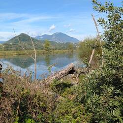 Ganz in der Nähe von unserem Übernachtungsplatz in Schito gibt es den Lago di Posta Fibreno. Er wird von klaren karstischen Quellen gespeist, was ihm eine charakteristische türkisfarbene Sichttiefe verleiht. Im See gibt es eine bekannte „schwimmende Insel“ aus dichter Vegetation (isola galleggiante). Das Gebiet ist ein geschütztes Naturreservat mit reicher Vogelwelt, ein Paradies für unzählige Entenarten und seltenen Wasserpflanzen. Man kann nahezu den ganzen See gemütlich zu Fuß umwandern. Die Wanderstrecke ist flach und nicht länger als 8 km.