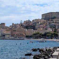 Ja, und dann sind wir plötzlich und endlich am Meer. Gaeta, wenig nördlich von Neapel. Hafenstadt, touristisch erschlossen, derzeit alles andere als überlaufen, ein echter Genuss. Feine Temperaturen, obwohl das Wetter zu wünschen übrig lässt. Wir wollten ja heute noch eine Bergwanderung machen im Naturpark dei Monti Aurunci. Aber da wirklich große Regenmengen vorausgesagt sind, lassen wir das lieber bleiben.