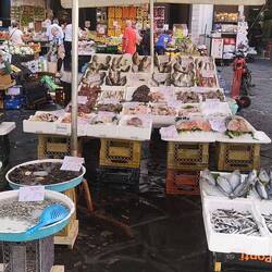 Auf den Markständen in Sanitá haben wir noch einiges an frischem Gemüse eingekauft. Heute waren wir dann wirklich übervoll von den vielen, vielen Eindrücken, sodass wir auch keine Lust mehr hatten, irgendwo zu essen. Lieber sind wir auf unseren Stellplatz zurückgekehrt und haben selber gekocht. Das wurde dann auch noch aufwändig. Gemüse mit Bulgur, gefüllte Zucchiniblüten und Fleischspießchen.