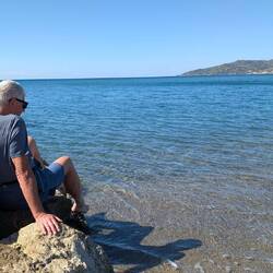 Wir fühlen uns hier sofort zu Hause. Nette Menschen, die mit Wohnmobilen hier sind und einige Nationalitäten vertreten: Deutschland (klar), Spanien, Niederlande, Schweiz, Italien, Österreich. Alle nett, mit allen sind wir sofort ins Gespräch gekommen. Und auch die Menschen, die hier leben, sind herzlich, freundlich, gesprächswillig. Zweimal haben wir am Abend wunderbar bei Ada und Nicola gegessen und getrunken, beides Mal in netter Gesellschaft. Am ersten Tag haben wir das warme Wetter, den Strand und das Meer genossen. Am zweiten Tag haben wir eine Wanderung zu zwei weiteren wunderschönen Buchten gemacht, Pozzallo und Cala Bianca. Traum und das Meer hat einfach herrliche Badetemperaturen. In der Bucht von Pozzallo gibt es sogar ein kleines Restaurant, das noch geöffnet hat und wunderbare Salate und Friselle anbietet.