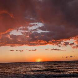 Übrigens: Das Wetter. Jetzt am Abend braut sich über dem Meer ein saftiges Gewitter zusammen, das mit Leibeskräften Richtung Land drängt.
