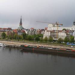 Stettin war früher Hansestadt und Hafen von Berlin. Heute will sie sich durch ihre Lage zwischen Oder und Stettiner Haff als "Floating City" neu erfinden. Da gibt es mittlerweile schon einige ambitionierte Projekte, wie z.B. die Philharmonie mit ihren gläsernen Giebeln. Ein äußerst interessantes Bauwerk, das 2014 den EU-Preis für zeitgenössische Architektur erhielt.