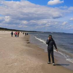 Wolin muss man nicht, Swinemünde hingegen schon. Swinemünde liegt auf der Insel Usedom, die einen deutschen Teil mit den ehrwürdigen Kaiserbädern und einen polnischen Teil mit der quirligen Stadt Swinemünde hat. Wir sind mit dem Balù bis fast an den Strand von Swinemünde gefahren und haben dann eine lange, lange Strandwanderung nach Heringsdorf auf deutscher Seite gemacht. Der Strand ist wunderschön, einfach großartig für unendlich lange Strandläufe und -Wanderungen. Für diese Jahreszeit tummeln sich schon sehr viele Leute am Strand, nein, nicht zum Baden..Alle Strandbars haben geöffnet und es geht fröhlich und lebendig zu.