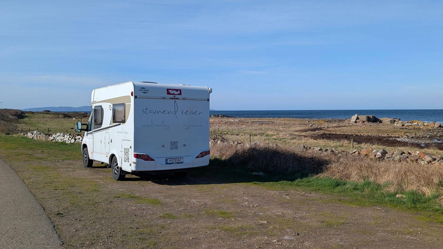 Aber dann ging alles reibungslos, Die Fähre startete pünkltlich um 18.00 Uhr, um 20:00 Uhr kamen wir in Gedser an. Dann fuhren wir noch weiter nach Gedesby, das sind nur 5 km südlich von Gedser und das ist der südlichste Punkt Dänemarks. Hier stehen wie jetzt am Meer.Read more