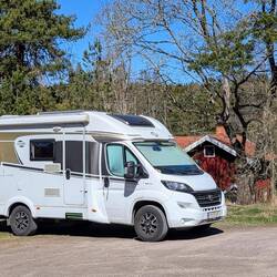 Danach ganz gemütlich in der Sonne sitzen und am Nachmittag fuhren wir schließlich weiter. Jetzt stehen wir ganz in der Nähe von Stockholm in Södertälje am Hallsfjärden. Heute waren wir zum ersten Mal auf dieser Reise essen, weil gleich neben unserem Übernachtungplatz ein schönes Restaurant steht. Das Essen war köstlich, der Abend gemütlich.Read more