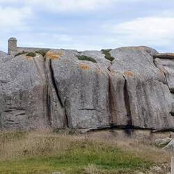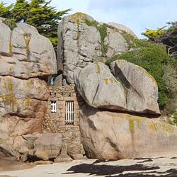 Das meistfotografierte Haus in Meneham ist natürlich das berühmte Wachhaus aus dem Jahr 1756. Eingefasst und gut geschützt von enormen Felsen wacht es über die Küstenlinie der Côte des Légendes. Es was das erste Gebäude, das an dieser Stelle errichtet wurde, viel später, um 1840 bildete sich dann die kleine Ansiedlung der Algenfischer direkt hinter dem Wachhaus.