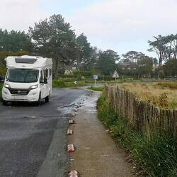 Auf einem Gemeindestellplatz kurz vor Mont Saint Michel übernachten wir heute. Es regnet.