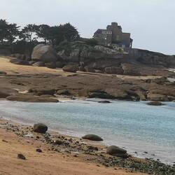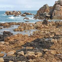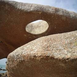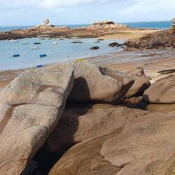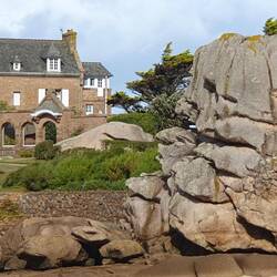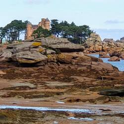 Da es ziemlich stark regnete, war das Erlebnis auf der Insel kurz und wir fuhren dann weiter nach Tregastèl, wo wir gegenüber vom Aquarium einen feinen Parkplatz fanden, auf dem wir heute auch übernachten. Zuerst aber müssen wir unbedingt noch eine Wanderung zwischen den berühmtes rosa Granitblöcken machen. Der Regen hat inzwischen aufgehört. Diese Gesteinsformationen sind ein Wahnsinn. Ich konnte mich gar nicht sattsehen. Ich kann das nicht beschreiben, man muss diesen Küstenabschnitt selber gesehen haben.