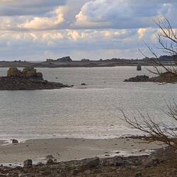 Am Vormittag sind wir von unserem Übernachtungsplatz wieder einmal zu einer langen Wanderung auf z.T. auf dem GR 34 aufgebrochen. Der GR 34 ist ein wunderschöner Weitwanderweg, der die ganze bretonische Küste entlangführt von Saint Nazaire nach Mont Saint Michel und 2000 km lang ist. Wenn man also hier an der Küste wandert, ist man zwangsläufig am GR 34, der übrigens sehr, sehr gut markiert ist. Also: Lange, sehr schöne Wanderung.