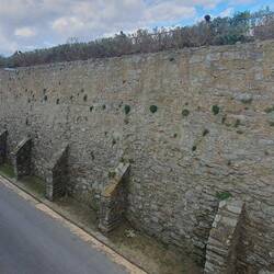 ein Friedhof und die meist recht hohe steinerne Einfassung