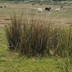Bei Ebbe kann man von unserem Stellplatz aus lange Wanderungen im Watt machen. Allerdings muss man sich unbedingt auf sichtbaren Pfaden bewegen, wenn man das Watt verlässt, da man sonst hoffnungslos in größeren und kleineren Sumpflöchern einsinkt und man keine Chance hat auszuweichen. Das können nur die vielen Schafe, die da herumstehen.
