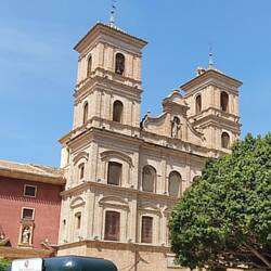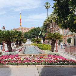 Murcia bei strahlendem Wetter. Vom Area Camper Murcia Rio sind es ziemlich genau 3 km zur Kathedrale bzw. zur Plaza Cardenal Belluga. Zu Fuß immer am Fluss entlang ein super Spaziergang.