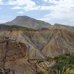 Aber die Wüste ist keineswegs das, was man sich gemeinhin unter einer Wüste vorstellt. Karge, unwirtliche Landschaft, durchzogen von vielen Ramblas (ausgetrocknete Flussbette), derzeit noch ziemlich viel grün, aber die Trockenheit und Hitze des Sommers liegt schon in der Luft.