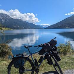 Da der Reschenpass für Fahrradfahrer gesperrt ist müssen Fahrradfahrer durch die Schweiz und dann due Norberts Höhe hoch. Das bedeutet deutlich mehr Höhenmeter als die Autofahrer, aber man schafftLæs mere