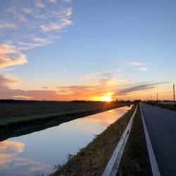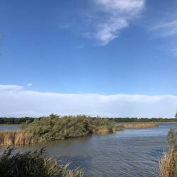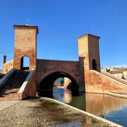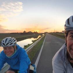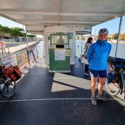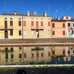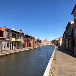 🗒️In der Nacht hat der Regen aufgehört und ein leichter Wind hat unser Zelt fast getrocknet. Sind morgens effizient und schnell, um 8:15 ist gepackt, die Sonne scheint und wir freuen uns auf den Tag. Ganz in unserer Nähe sind drei Wildpferde aufgetaucht. Also gibt es erst mal eine Fotosession. Ein Auto der lokalen Polizei fährt vorbei, zum Glück ist das Zelt verpackt, wäre eventuell nicht so gut gewesen. Weiter gehts auf einem Feldweg entlang der Seen des Podeltas. Schöne Atmosphäre am Morgen. Fischer haben hier große Netzvorrichtungen installiert. Diese viereckigen Netze können ins Wasser abgesenkt werden und über Winden wieder nach oben gezogen werden. Heute ist aber niemand am Fischen. Für uns gehts jetzt auf die große Straße. Mit Rückenwind düsen wir voran. Am Straßenrand sehen wir den Po und den Schwanz einer Biberratte im Gestrüpp verschwinden, diese leben hier am Wasser vom Po-Delta. Plötzlich nimmt der Wind heftig zu. Steffi wird von der Straße geblasen und kann Markus nur langsam folgen. Verlassen dann die Straße und als auch noch Regen einsetzt, retten wir uns in ein Restaurant. Wärmen uns mit Cappuccino und genießen die Cornettis. Für 3€ gibt es einen Cappuccino plus Cornetti und zudem sehr gut. Markus quatscht kurz mit dem Koch, der ist beeindruckt von uns und empfiehlt das nahegelegene Comacchio anzuschauen. Als es wieder trocken ist und die Sonne rauskommt machen wir uns auf den Weg. Zuerst nehmen wir eine kleine Fähre über den Kanal zwischen Lido degli Estensi und Porto Garibaldi. In 1 Minute sind wir auf der anderen Seite und haben etwas abgekürzt. Comacchio gefällt uns gut. Viele kleine Kanäle durchziehen die Stadt mit ihren bunten Häuschen, kleine Brücken und die große Ponte dei Trepponti überspannen das Wasser. Könnten noch länger hier herumschlendern, aber wollen noch ein paar Kilometer machen. Jetzt geht es an Feldern vorbei auf kleineren und größeren Straßen. In Vaccolino noch ein kurzes Picknick und in Mesola ein Einkauf. Leider finden wir heute keine Gaspatrone, versuchen es in mehreren Ferramentas. Überall gibt es nur Patronen zum anstechen und diese sind nicht kompatibel mit unserem Kocher. Könnten auch mit Benzin kochen, verzichten aber heute darauf. In Ca‘ Tiepola wird es dann dunkel. Suchen nochmal eine Bar auf, um uns aufzuwärmen und zu gucken wo wir übernachten. Entscheiden uns fürs Zelt. Also im Dunkeln los. Stellen das Zelt auf einem Deich oberhalb der Straße hinter etwas hohem Gras auf. Nicht ideal, aber die vorbeifahrenden Autos scheinen uns nicht zu sehen. Im Fluss unterhalb von uns hören wir höchstwahrscheinlich nochmal eine Biberratte. Hoffen wir mal, dass die uns nachts nicht besucht. Noch etwas Brot und Käse zum Abendessen und schnell schlafen wir ein.Read more