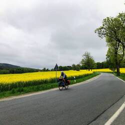 🗒️Nach einem sehr gemütlichen Frühstück bei Christian und Isabel im Garten mit Lupinencafe und in Gesellschaft von Hund und Katzen gehts heute etwas später los. Wir müssen bergauf durch den Thüringer Wald. Beim Frühstück noch Sonne, jetzt immer kälter. In Bad Lobenstein retten wir uns in eine Bäckerei, aufwärmen, essen und viel mehr anziehen, die Skiunterwäsche ist ja dabei 🙂. So gehts weiter an traumhaften Rapsfeldern, Schieferhäusern, Seen und Wald vorbei. Zum Schluss noch ein Singletrail zum Camping in Weida an der Aumatalsperre.Read more