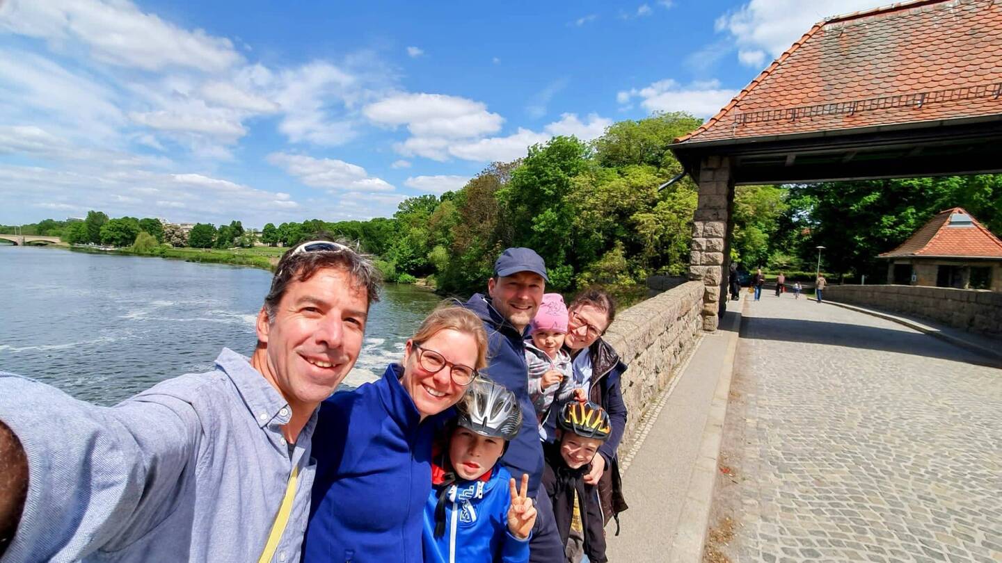 🗒️Nach dem Ausschlafen und einem gemütlichen Frühstück ging es mit den drei Kindern, die Kleine im Hänger und die Größeren auf den Rädern zu siebt auf Stadtrundfahrt. Haben viel erfahren und gesehen. Eine grüne Stadt mit viel Wasser, altem und neuem, hat uns gut gefallen. Zur Stärkung ein Eis und zu Hause noch mal grillen und planen für morgen.Read more