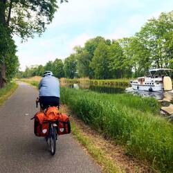 🗒️Morgens genossen wir beim Frühstück nochmals den Blick aus dem 17. Stock über Berlin, dann ein paar Sehenswürdigkeiten: Siegessäule, Brandenburger Tor, Bundestag…und ab nach Norden durch die Stadt (Wedding, Reinickendorf), etwas lustlos, heiß, Ampeln, Geholper…bis nach Oranienburg. An der Havel gibt es Eis und Café, gestärkt geht es auf schönen Wegen am Oder/Havel-Kanal und am Voßkanal, an einer Ziegelei vorbei bis zum kleinen Wentowsee, doch noch über 90km geschafft, Zelt aufstellen, baden, duschen und kochen, schnell einschlafen.Read more