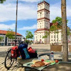 🗒️Über Donauwörth und Neuburg radeln wir 110km nach Ingolstadt an der Donau entlang. Es regnet den ganzen Tag ununterbrochen von leicht bis stark. Regenklamotten aber dicht 🙂. Schöne Alleestrassen mit alten Bäumen, hübsche Städtchen und immer wieder der Blick auf die Donau. Vor dem Einchecken im Hotel noch Mensch und Material mit dem Wasserschlauch an der Tankstelle gereinigt.Read more