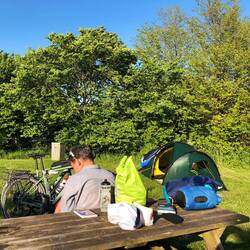 🗒️Es gab noch einige Einkäufe zu erledigen (dm, Edeka, Buchladen,…), dann 10km zum Hafen, etwas warten und 2h Fährfahrt mit Café, lesen, recherchieren, Amarula shoppen… in Gedser strahlender Sonnenschein. Wir bleiben direkt dort: nette Shelter, ganz einfacher Zeltplatz, so schön, Online Check in 45 DKK, Blick aufs Meer, lange hell (Sonnenuntergang erst 21:30), lecker Tomatenreis und Amarula Schlummertrunk.Read more