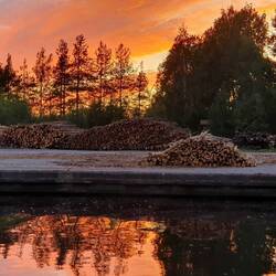Taipalekanal einen schönen Fleck Rasen & erküren den zu unserem Nachtlager. Ist allerdings noch zu früh, um das Zelt aufzustellen. Bewundern kurz die Arbeiter, die hier von Hand & mit Hilfe eines Lotsenbootes Massen von Baumstämmen herummanövrieren. Varkaus ist mittels Wasserstrassen in alle Himmelsrichtungen gut vernetzt & lebt stark von der holzverarbeitenden Industrie & damit zusammenhängenden Themen (Forstwirtschaft, Sägewerke, Karton- & Papierfabriken, Druckereien sowie Zulieferbetriebe aus der Chemie- & Maschinenbaubranche). Eindrücklich, welche Mengen an Baumstämmen hier herumliegen & auf dem Wasser zwischengelagert werden.