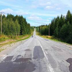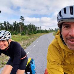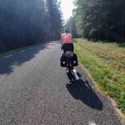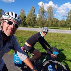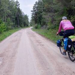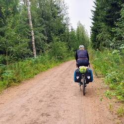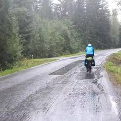 Wollen nach Pieksämäki zu einem warmshower, den wir von Guillaume, den wir an unserem letzten Norwegen Tag trafen, empfohlen bekommen haben. Es geht über kleinere Straßen, die recht holprig sind. Können nicht gut Windschatten fahren, da es besser ist die Schlaglöcher im Blick zu haben. Markus hat Mühe mit dieser Straße, das Material leidet. Steffi gefällt es besser.