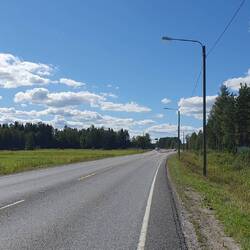 Die ersten 12km verlaufen auf der Hauptstrasse, hat aber nicht viel Verkehr. Danach verlassen wir diese & folgen fast nur noch kleineren Nebenstrassen. Die Gegend ist dünn besiedelt, immer wieder passieren wir vereinzelte Häuser oder kleine Siedlungen. Oft wirken die Gebäude etwas heruntergekommen, lotterig & nicht allzu liebevoll gepflegt. Norwegen zeigte sich diesbezüglich deutlich lieblicher & einladender. Weshalb dies so ist wissen wir nicht. Vielleicht einfach der unterschiedliche Charakter der Finnen resp. Norweger? Oder ist Finnland generell ärmer? Das Wetter spielt in unserer Wahrnehmung sicher auch eine Rolle, in Norwegen hatten wir auch riesiges Wetterglück, hier in Finnland ist es öfters durchzogen. Heute Nachmittag gewinnt aber kurzfristig wieder die Sonne☀️. & jetzt, westlich von Sahalahti, folgen auch wieder ein paar landschaftlich tolle Kilometer!