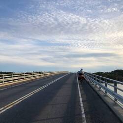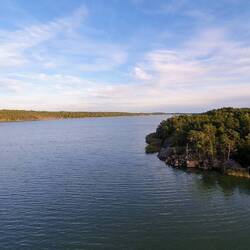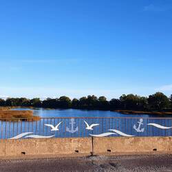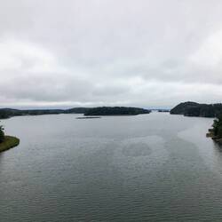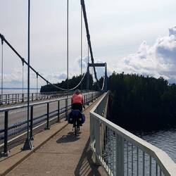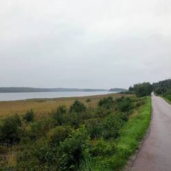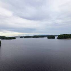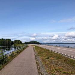 Die heutige Strecke hat ein paar sehr schöne Abschnitte mit Brücken, schmalen Landverbindungen zwischen zwei Seen etc., aber insgesamt kann es uns bei weitem nicht so begeistern wie Norwegen. Ist aber trotzdem schön & wir sind glücklich.